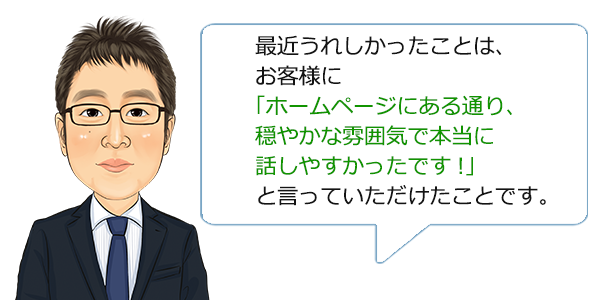 相続税務のプロとしての知識でサポートすることは当然ですが、お客様の立場に立って親身にアドバイスさせていただくよう心がけております。